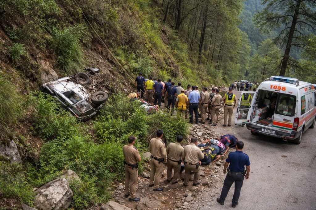 पिकअप वाहन खाई में गिरा , 5 घायल