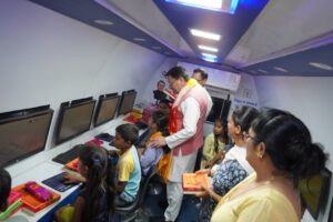 इस दौरान मुख्यमंत्री पुष्कर सिंह धामी ने वरिष्ठजन एवं जनमानस से भेंटवार्ता कर उनसे संवाद किया। फिर कम्प्यूटर ऑन व्हील में बच्चों से बात की।