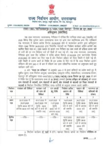 उत्तराखंड में त्रिस्तरीय पंचायत चुनाव की तिथियों की घोषणा हो गई है।। 24 और 28 जुलाई को वोटिंग व 31 जुलाई को काउंटिंग होगी। 30 जून को अधिसूचना जारी होगी। प्रथम और द्वितीय चक्र के लिए 02 जुलाई से नामांकन प्रक्रिया शुरू होगी। 07 जुलाई को नामांकन पत्रों की जांच की जाएगी वहीं 10 जुलाई को नाम वापसी की अंतिम तिथि होगी।