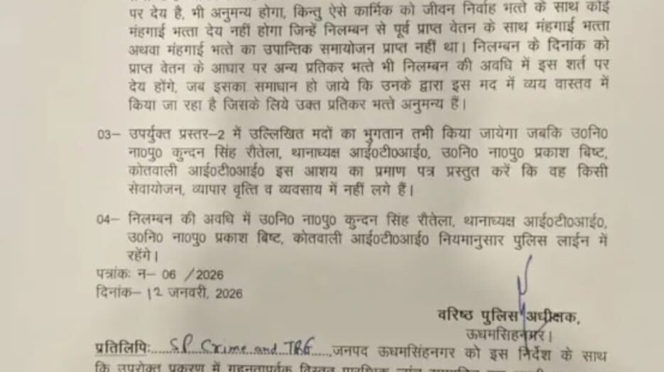 काशीपुर/हल्द्वानी। किसान द्वारा आत्महत्या के मामले में पुलिस ने बड़ी कार्रवाई करते पुलिसकर्मियों को निलंबन और लाईन हाज़िर की करवाई की है। गौरतलब है कि गौलापार के एक होटल में स्वयं को गोली मार कर आत्महत्या करने वाले किसान मृतक सुखवंत सिंह पुत्र तेजा सिंह से जुड़े आत्महत्या प्रकरण में बरती गई गंभीर लापरवाही और […]