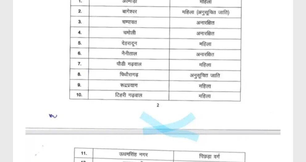 देहरादून। उत्तराखंड सरकार ने त्रिस्तरीय पंचायतों (जनपद हरिद्वार को छोड़कर) के सामान्य निर्वाचन-2025 के अंतर्गत जिला पंचायत अध्यक्ष पदों के लिए अनंतिम आरक्षण सूची जारी कर दी है। यह आरक्षण भारत के संविधान के अनुच्छेद 243-D, उत्तराखण्ड पंचायतीराज अधिनियम 2016, संशोधित अध्यादेश 2025 तथा नवीन आरक्षण नियमावली 2025 के तहत तय किया गया है। गौरतलब […]